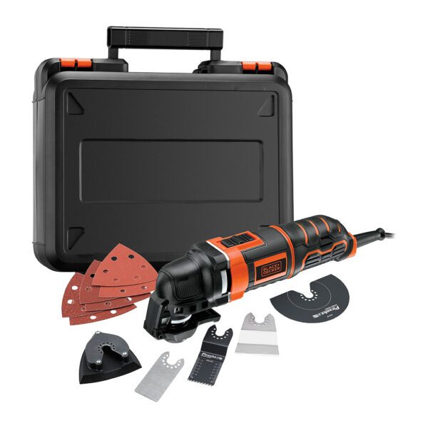• Ponorný pílový plátok 32 mm HCS (drevo), Segmentový pílový plátok 85 mm BiM (drevo + kov), Škrabací nôž tuhý 52 mm HCS, Delta brúsna platňa so suchým zipsom 93 mm, 5 brúsnych papierov so suchým zipsom 93 mm P 80, 5 brúsnych papierov so suchým zipsom 93 mm P 120, Adaptér na odsávanie, Multiadaptér, Box s nástrojmi, metaBOX 145