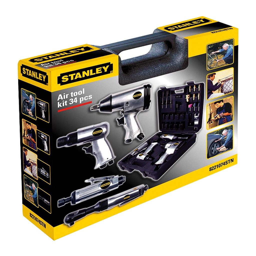 Domov » Náradie » Pneumatické náradie » Uťahovače » Príklepové uťahovače » Stanley 8221074STN – Sada pneumatického príslušenstva 34-dielna