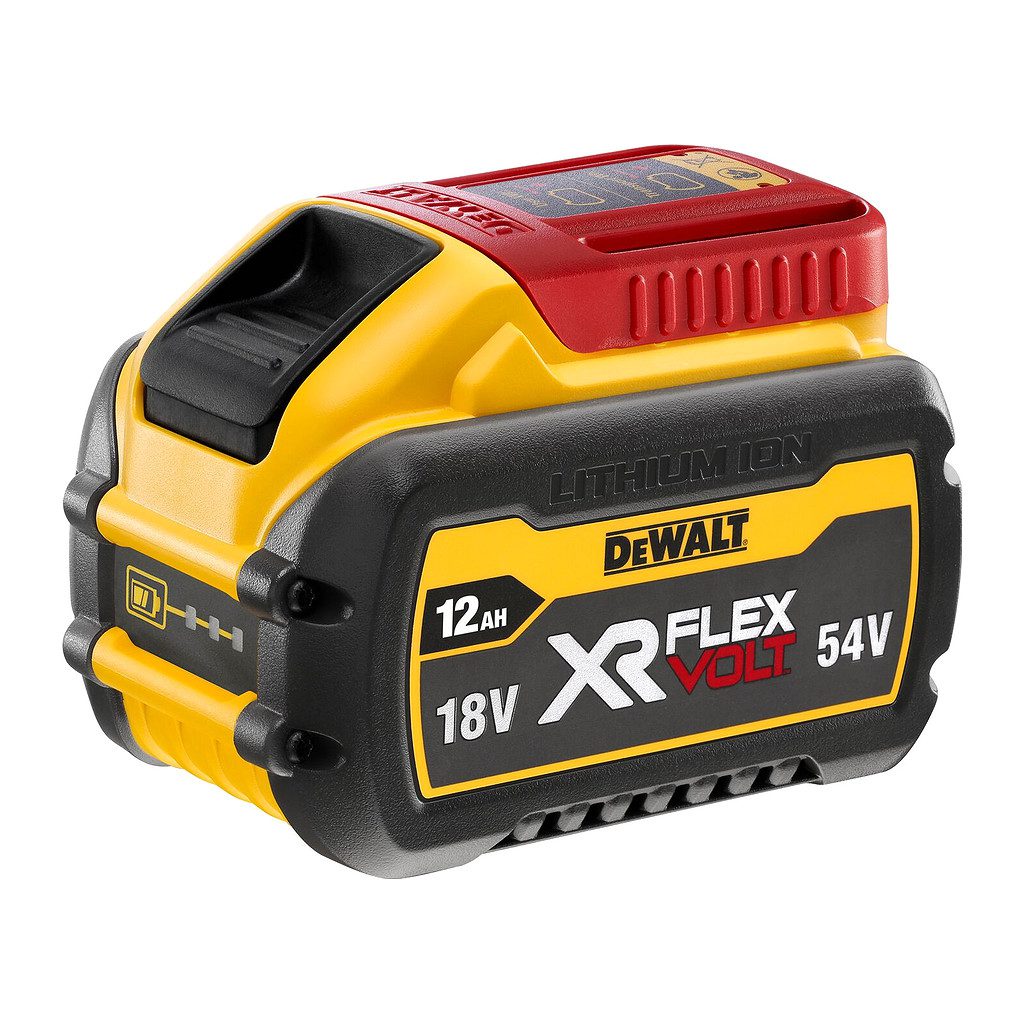 • Nový zásuvný akumulátor Dewalt FlexVolt® XR® s kapacitou 12,0/4,0Ah poskytuje napätie 18/54V
