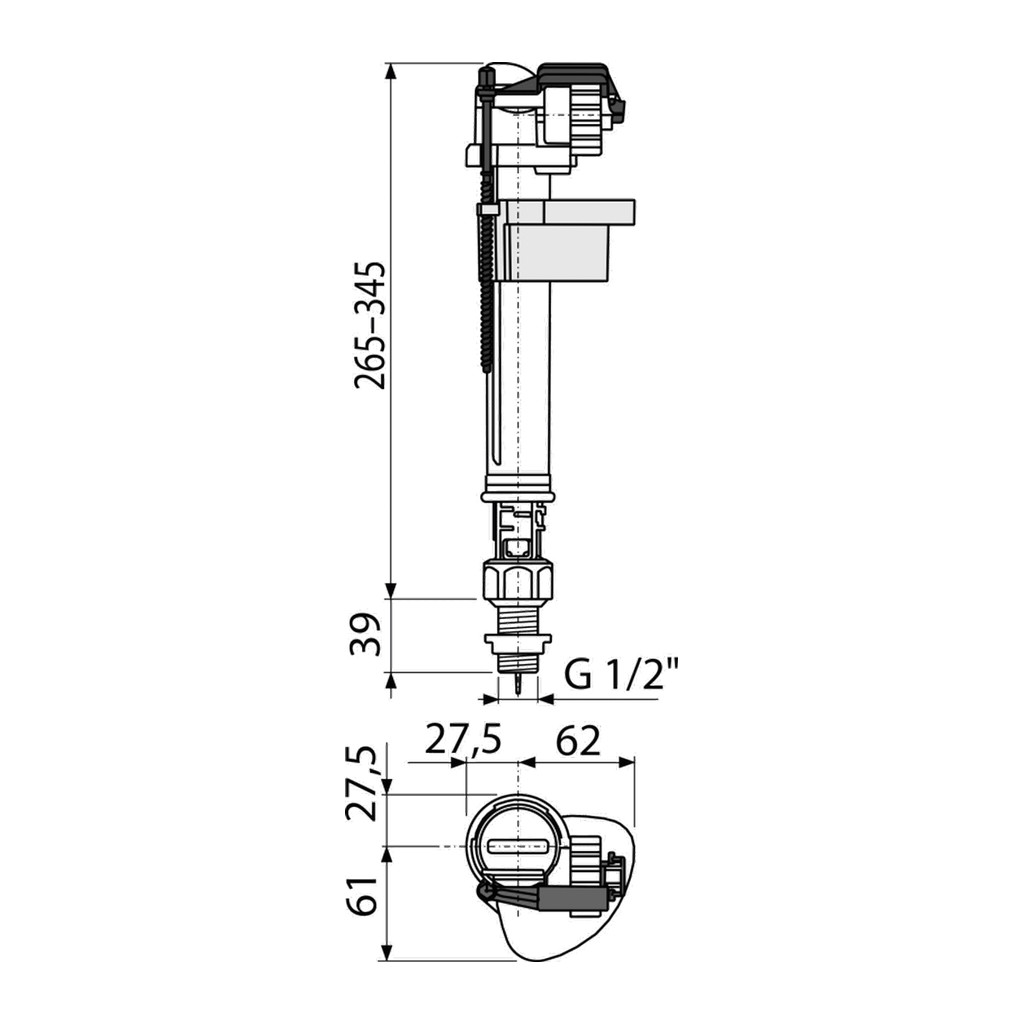 Konštrukcia umožňuje nastavenie optimálnej výšky ventilu podľa výšky nádržky