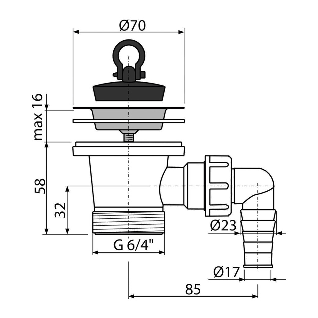 Domov » Sanita » Kúpeľne » Odtokové systémy » AlcaPlast A33P – Výpusť drezová 6/4″ s nerezovou mriežkou DN70 a prípojkou
