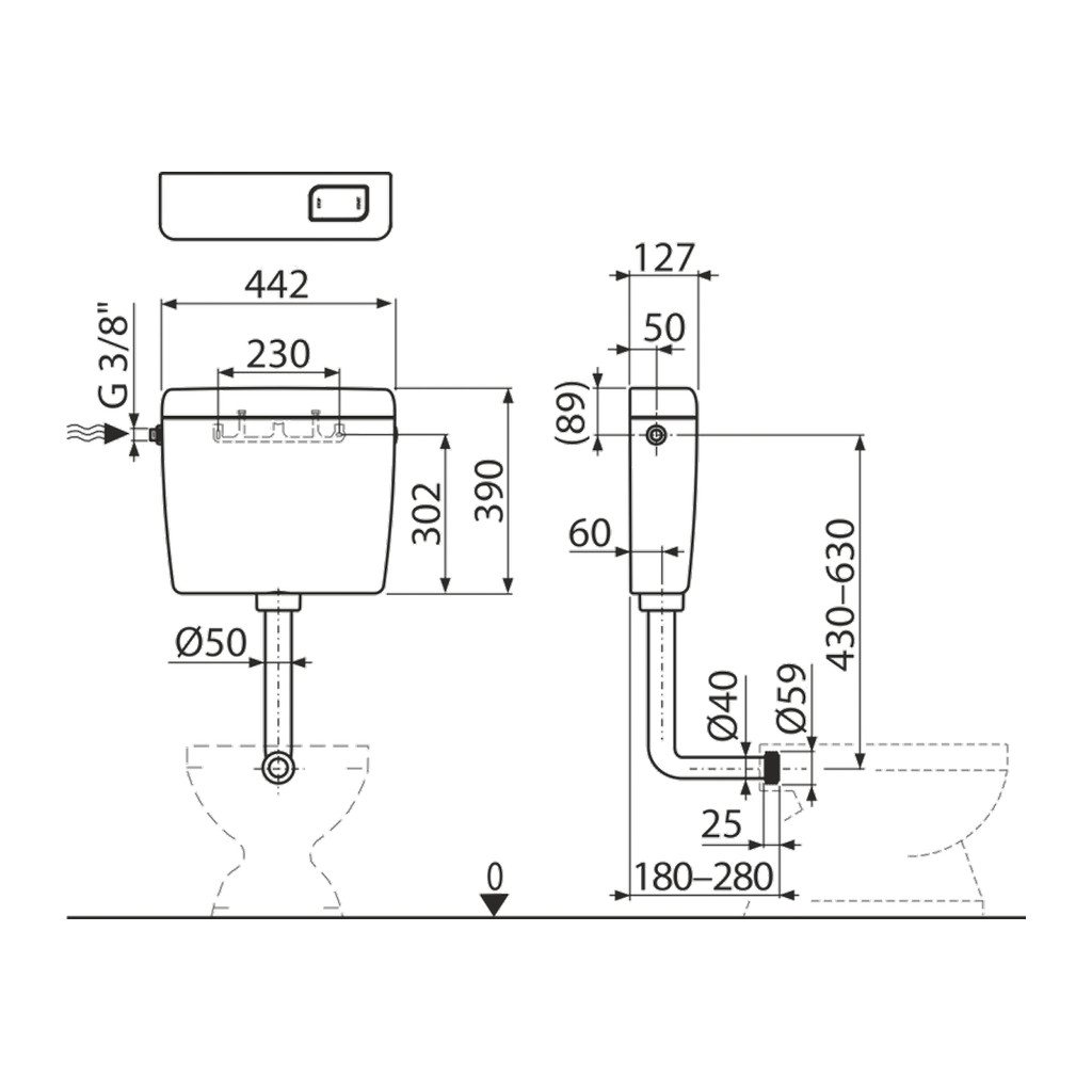 Splachovací set pre nízkopoloženú nádržku (tlačítko)
