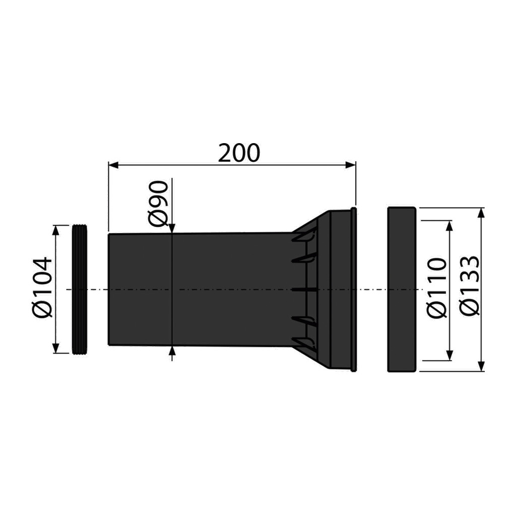 Priame hrdlo pre napojenie závesnej WC misy k odpadu, PP, Ø90 mm, vrátane tesnenia