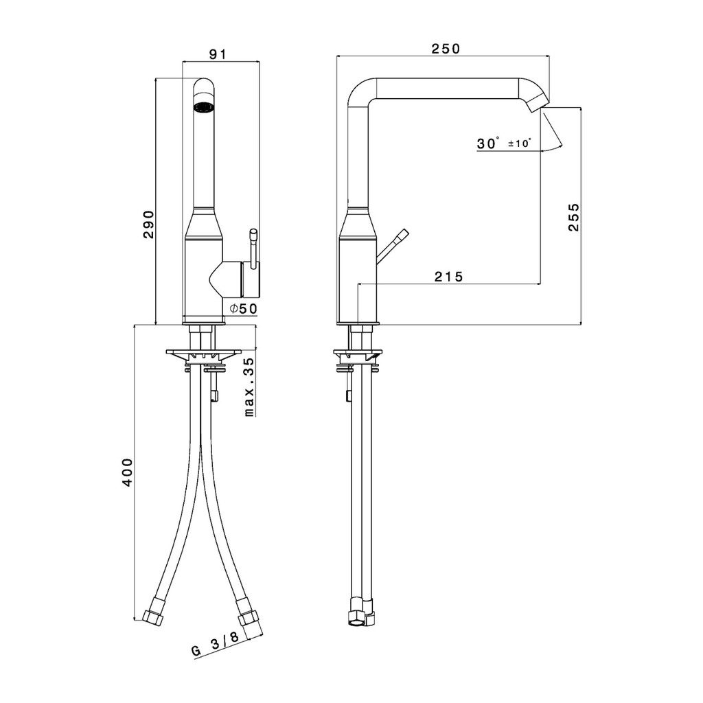 • Spôsob pripojenia: 3/8 flexi tlakové hadičky