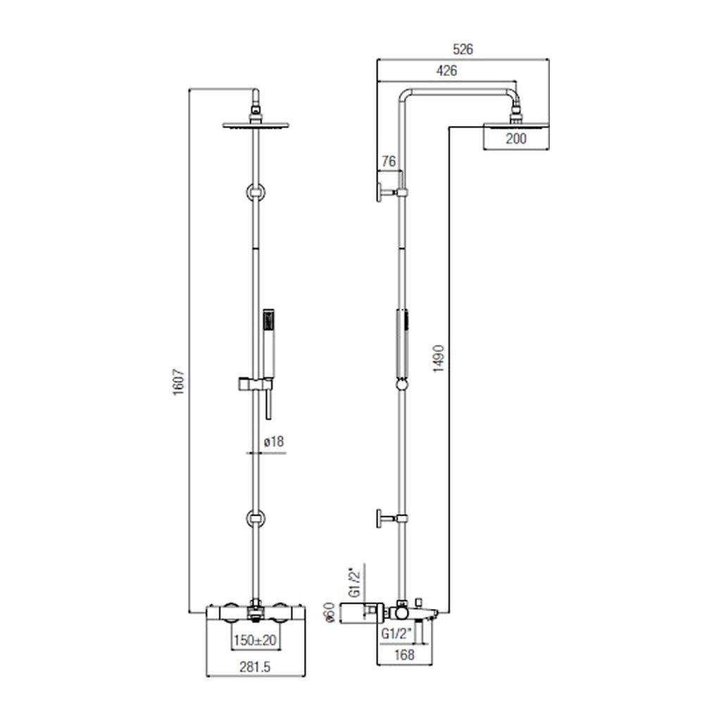 • Výška po hlavovú sprchu: 1490 mm