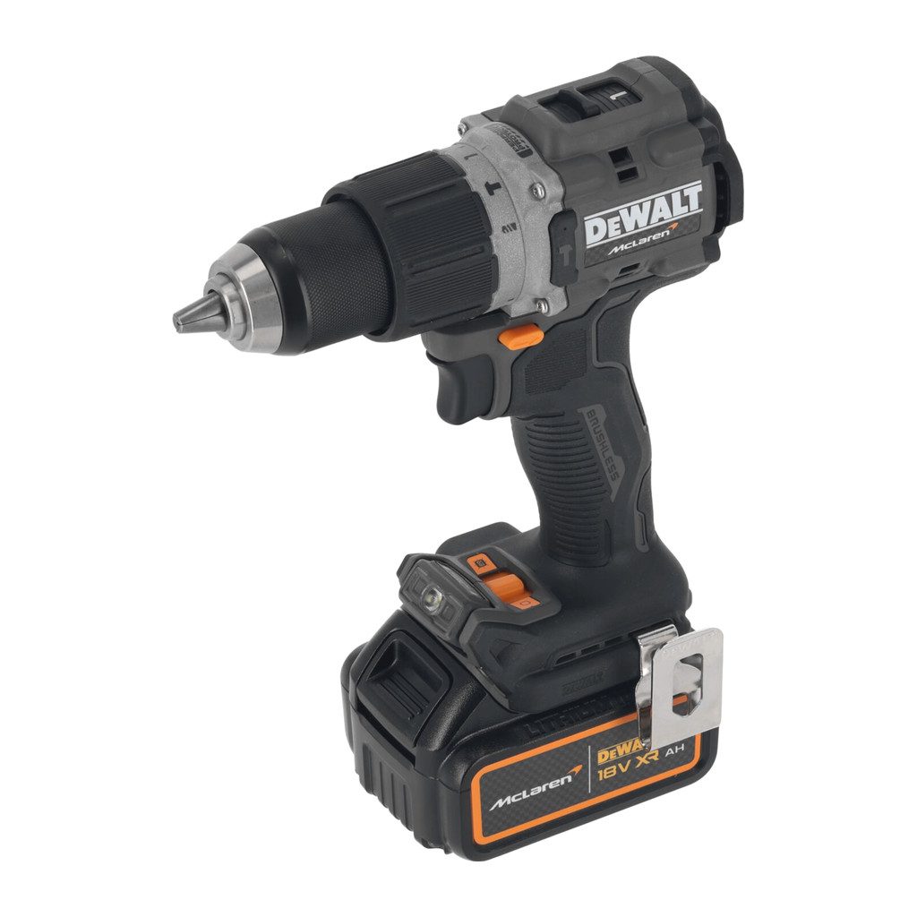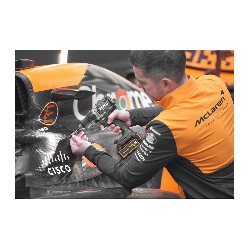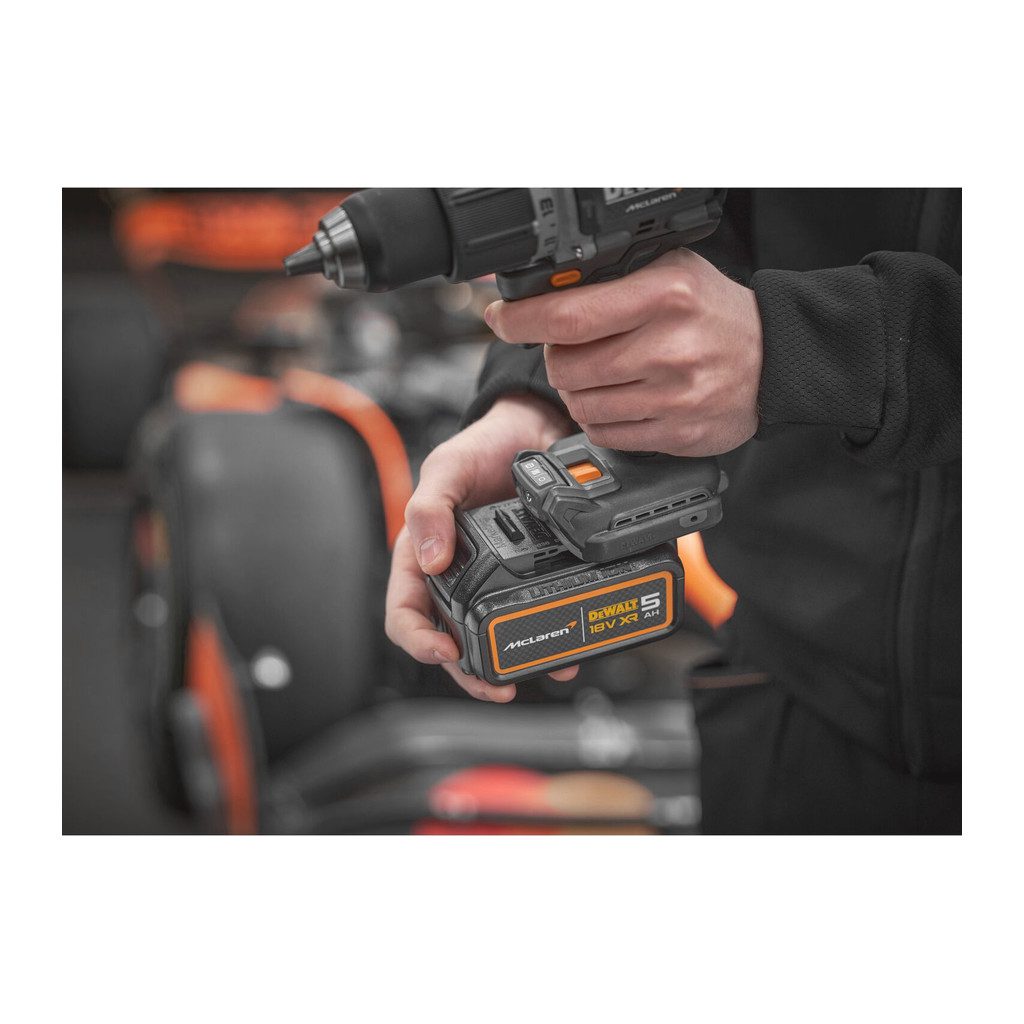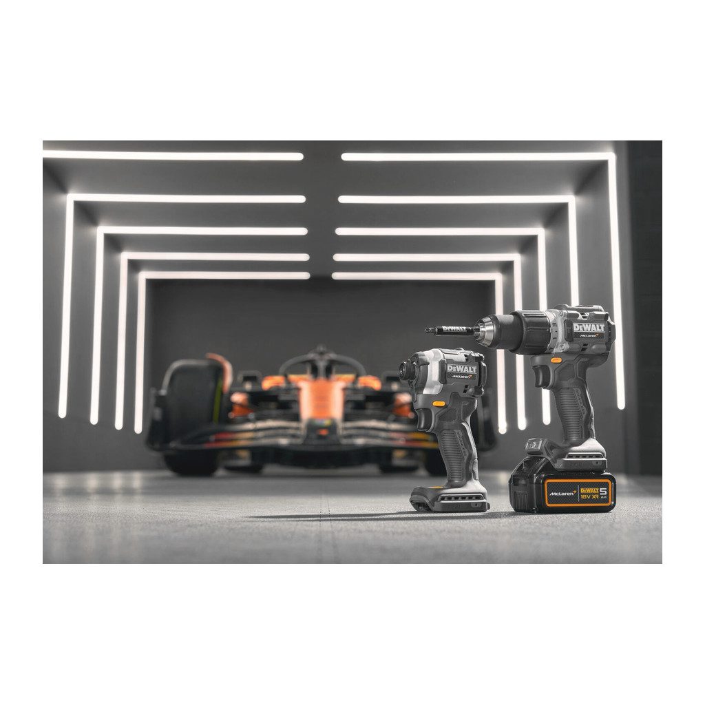 Domov » Náradie » Aku náradie » Vŕtačky a skrutkovače » Príklepové vŕtačky » DeWALT DCD85MP2T – AKU skrutkovač s príklepom, 18V, XR®, 2×AKU 5,0Ah, McLaren