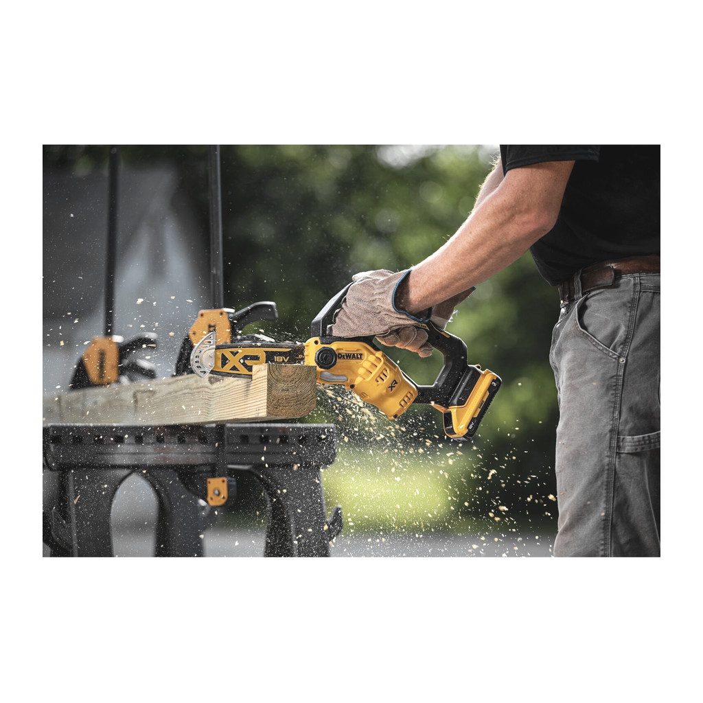 Ľahká a kompaktná akumulátorová prerezávacia reťazová píla 18 V XR je vybavená vysokoúčinným bezuhlíkovým motorom navrhnutým na maximalizáciu dobu prevádzky. Vhodná na orezávanie konárov zo spadnutých stromov, rezanie zväzkov dreva, úpravu hustého krovia alebo každodenné prerezávanie. Vďaka kompaktnému dizajnu umožňuje ľahký prístup do stiesnených priestorov.