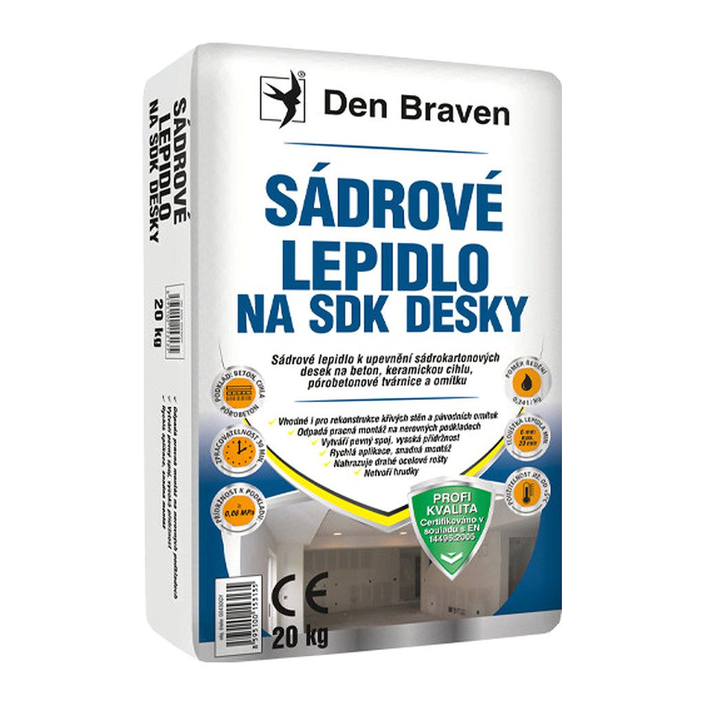 Domov » Stavebniny » Sadrokartón » Lepidlá » Den Braven 00430GY – Sadrové lepidlo na SDK dosky 20 kg vrece
