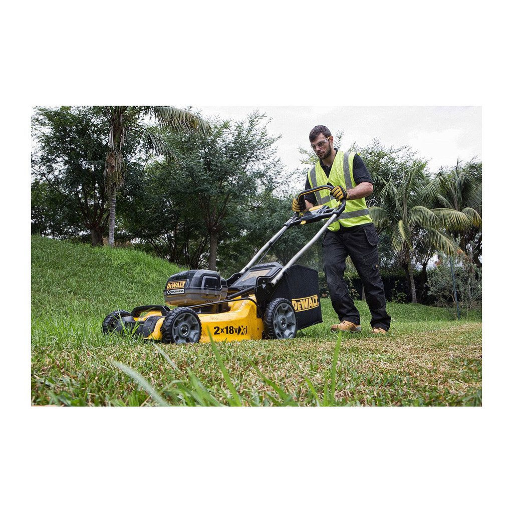 Domov » Náradie » Aku náradie » Kosačky na trávu » DeWALT DCMW564P2 – AKU kosačka na trávu 2×18V, 48cm, 2×AKU 5,0Ah, nabíjačka