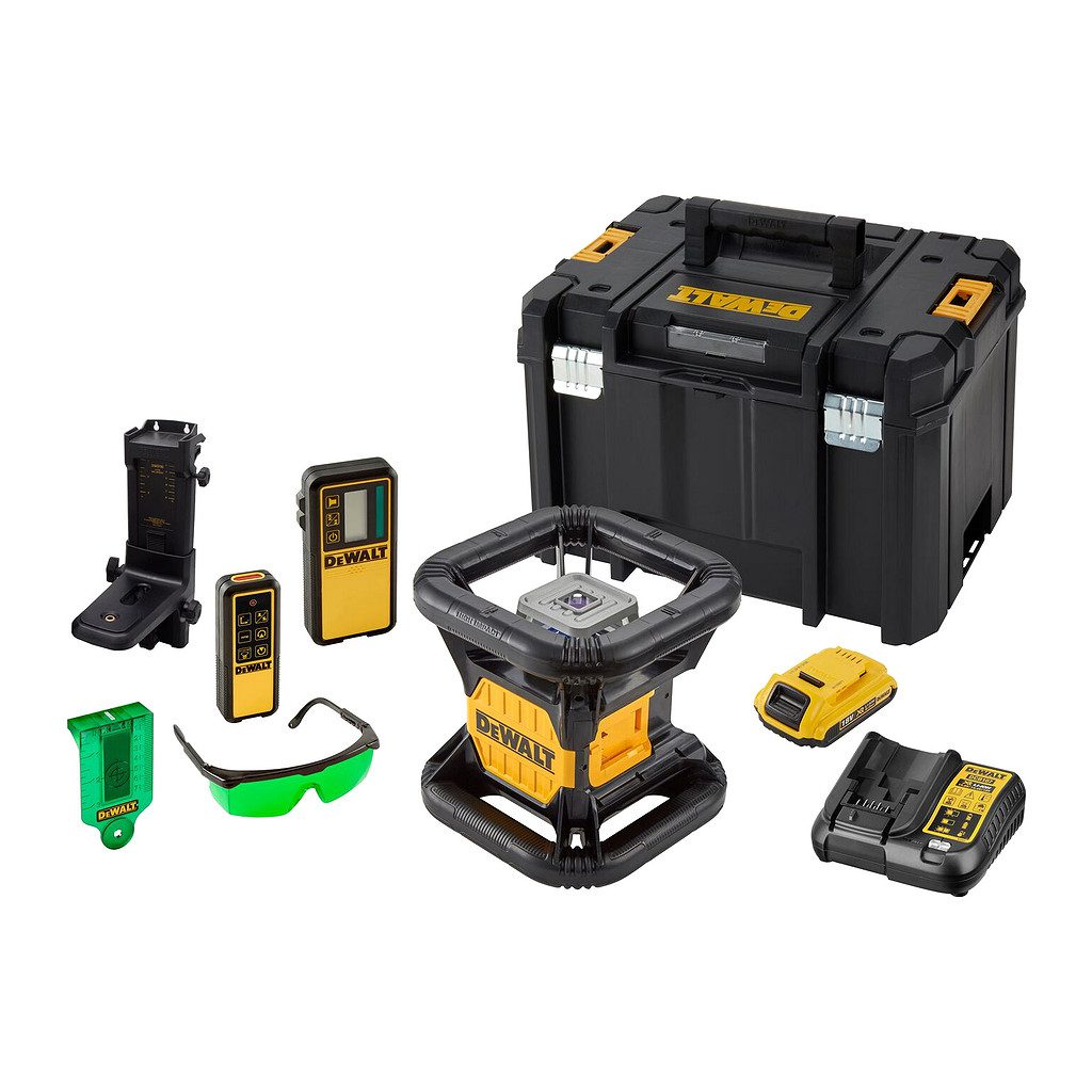 Domov » Náradie » Aku náradie » Lasery » DeWALT DCE079D1G – AKU rotačný laser zelený 18V XR®, 300m, 1×AKU 2,0Ah, kufor TSTAK™, prijímač