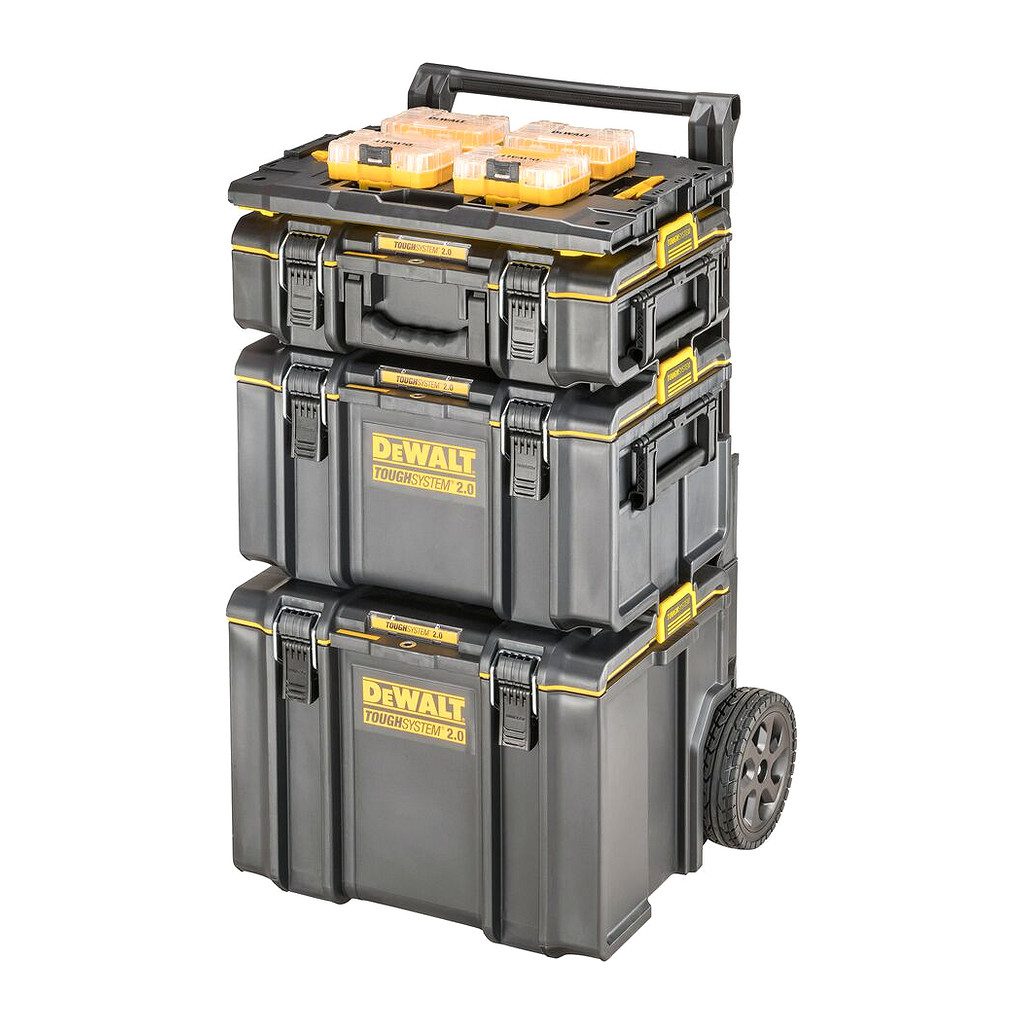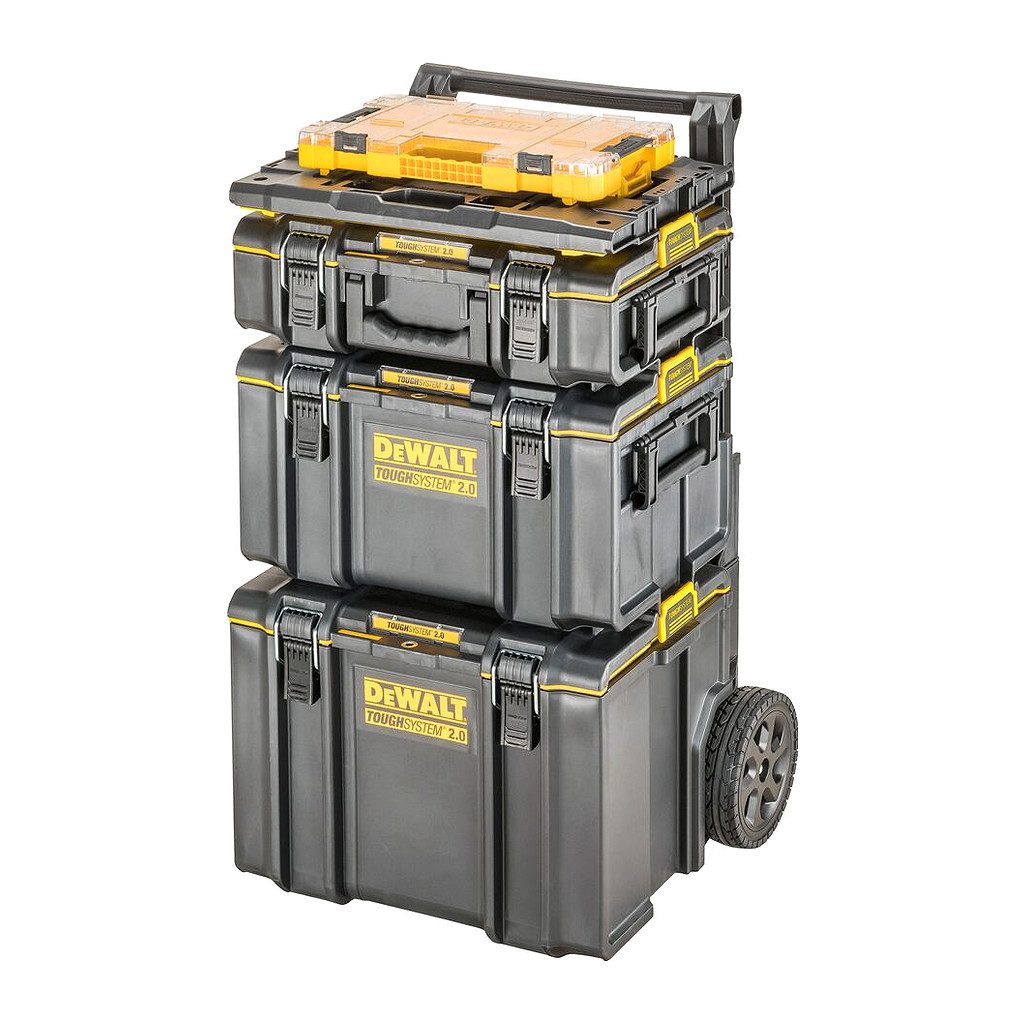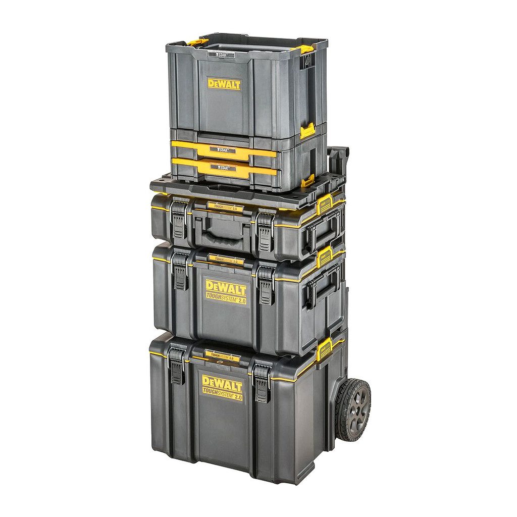 DEWALT® TOUGHSYSTEM® je systém úložných boxov, vozíkov a ďalšieho príslušenstva pre organizáciu nástrojov a materiálov. TOUGHSYSTEM® 2.0 je novšia verzia tohto systému, ktorá prináša vylepšené vlastnosti a nové prvky ako napríklad jednotný uzáver pre všetky boxy, zvýšenú odolnosť a ergonomický dizajn.