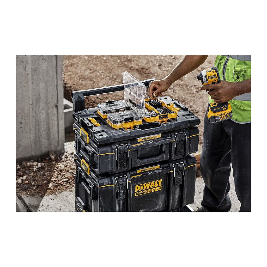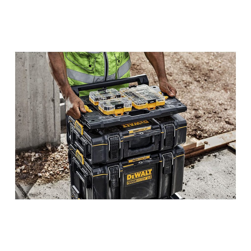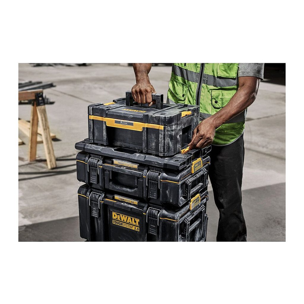 DEWALT® TOUGHSYSTEM® je systém úložných boxov, vozíkov a ďalšieho príslušenstva pre organizáciu nástrojov a materiálov. TOUGHSYSTEM® 2.0 je novšia verzia tohto systému, ktorá prináša vylepšené vlastnosti a nové prvky ako napríklad jednotný uzáver pre všetky boxy, zvýšenú odolnosť a ergonomický dizajn.