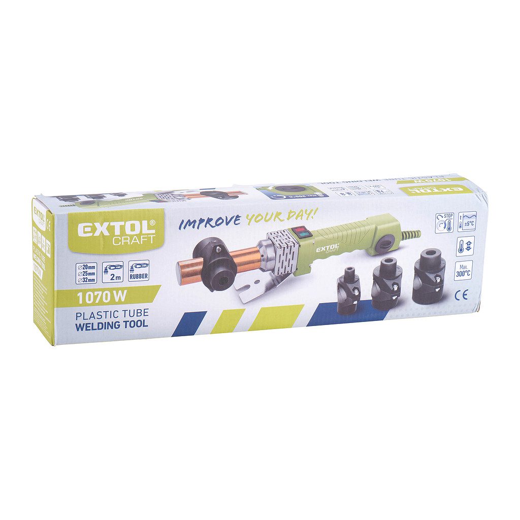 Domov » Náradie » Elektrické náradie » Zváračky » Polyfúzne zváračky » Extol Craft 419313 – Zváračka polyfúzna, 1070W, 240-300°C, nadstavce 20,25,32mm