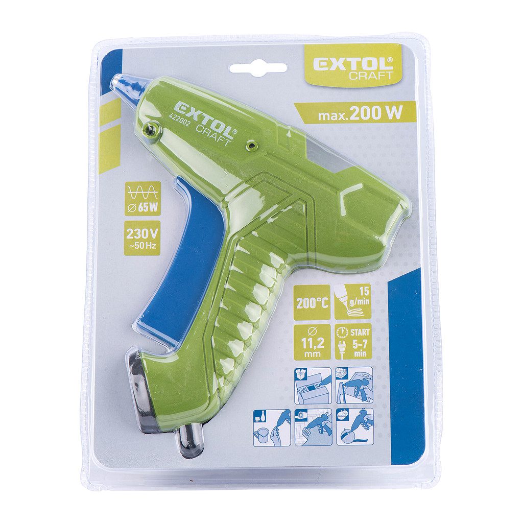 Domov » Náradie » Elektrické náradie » Pištole » Pištole na tavné lepidlo » Extol Craft 422002 – Pištoľ lepiaca tavná, 200W, Ø11.2mm
