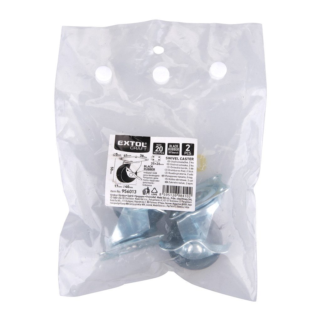 Domov » Náradie » Úložné systémy » Kolieska » Extol Craft 956013 – Kolieska otočné s brzdou 2ks, Ø40mm, max. 20kg/1ks