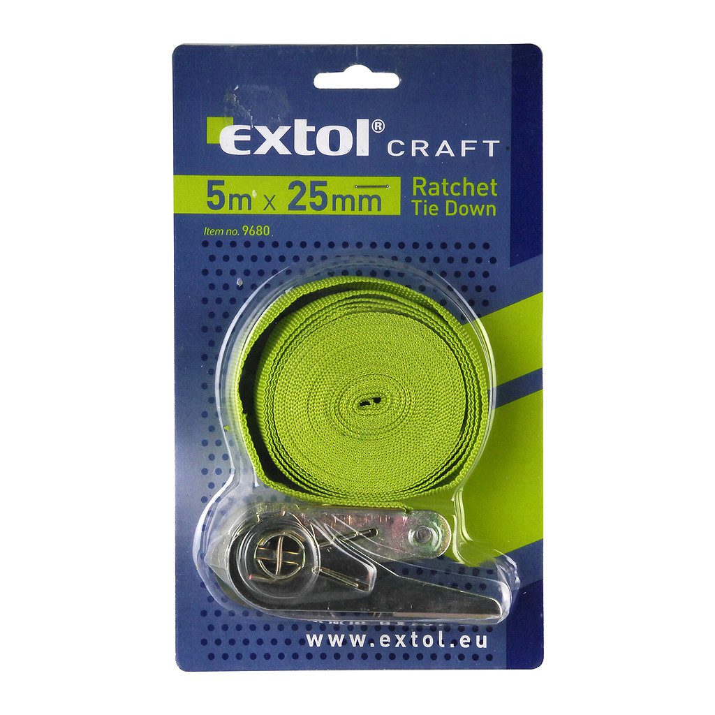 Domov » Náradie » Ručné náradie » Laná, povrazy a pásy » Gurtne » Extol Craft 9681 – Pás sťahovací ”gurtňa”, 5m, 2 háky, nosnosť max. 150kg