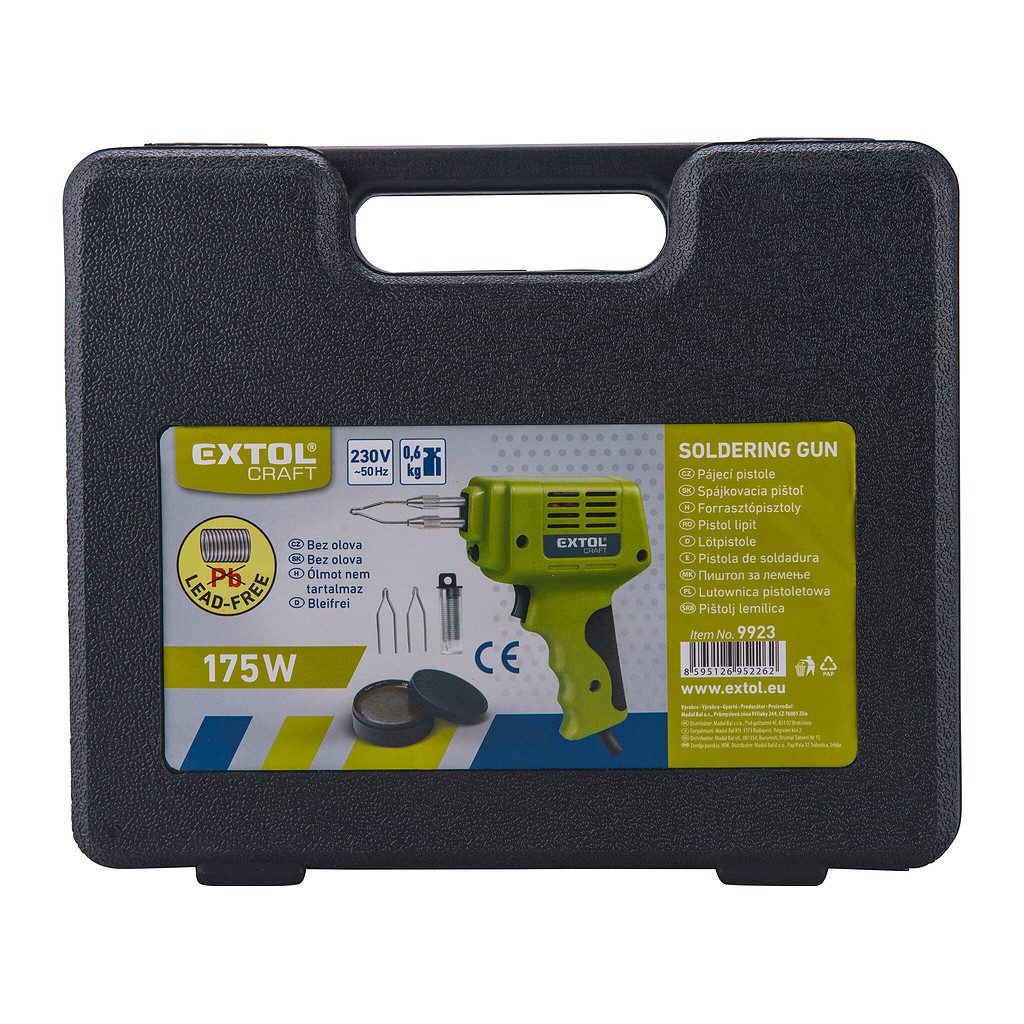 Domov » Náradie » Elektrické náradie » Spájky » Extol Craft 9923 – Pištoľ spájkovacia, príkon 175W, s kufrom
