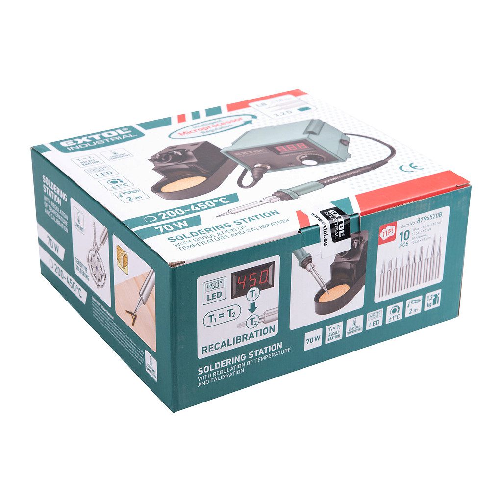 Domov » Náradie » Elektrické náradie » Spájky » Extol Industrial 8794520 – Spájkovacia stanica s digitálnou reguláciou teploty, príkon 40W