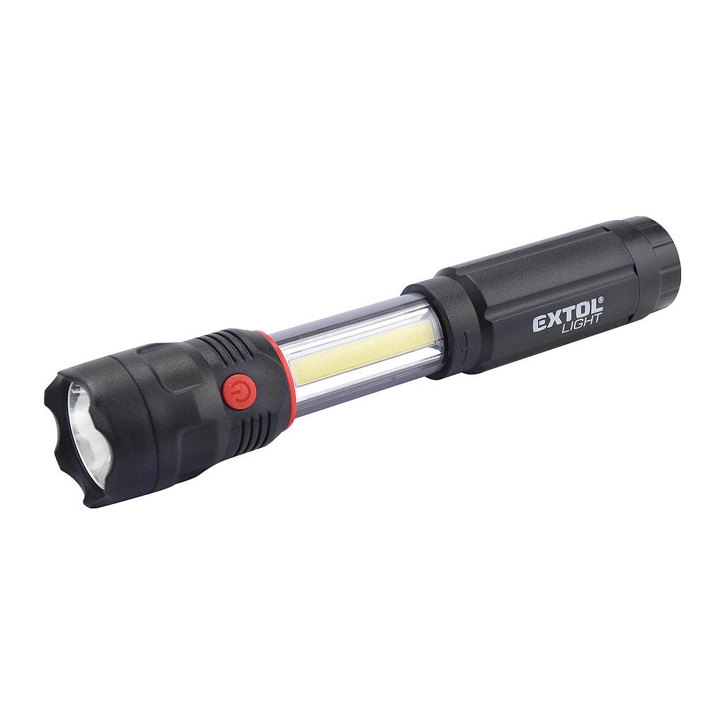 Domov » Náradie » Ručné náradie » Svietidlá » Extol Light 43117 – Svietidlo 3W XPE (100lm) + 3W COB bočné (150lm) LED, 4xAAA, dĺžka 170mm