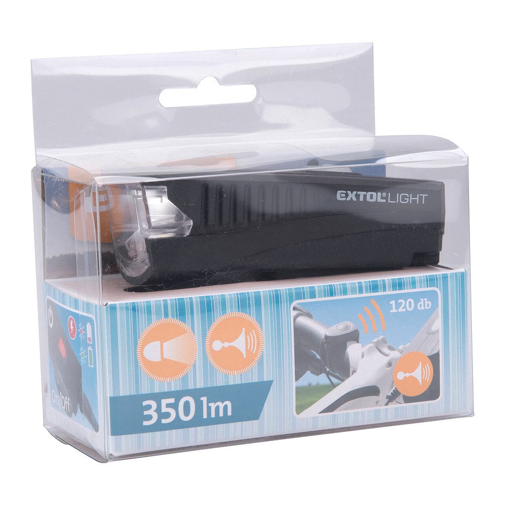 Domov » Náradie » Doplnky » Svietidlá a žiarovky » Na bicykel » Extol Light 43137 – Svietidlo na bicykel, 350lm, 1,2Ah Li-Po, IPX4, microUSB nabíjanie, klaksón