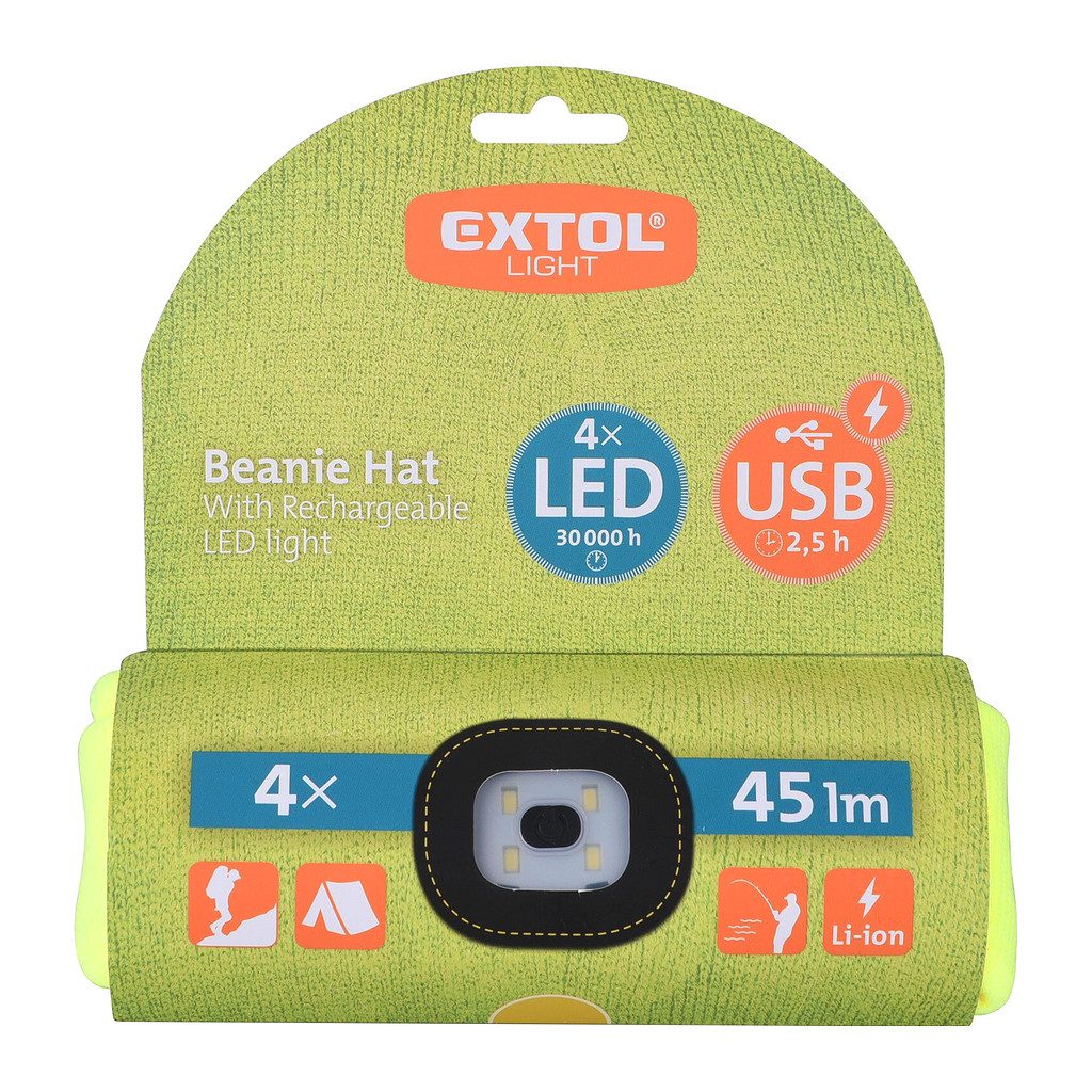 Domov » Náradie » Aku náradie » Svietidlá » Čiapky » Extol Light 43194 – Čiapka žltá, s čelovým svetlom, LED 4x45lm, 300mAh Li-ion