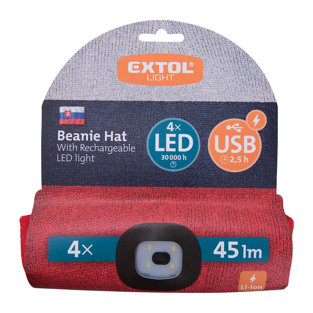 Domov » Náradie » Aku náradie » Svietidlá » Čiapky » Extol Light 43451 – Čiapka s čelovým svetlom, 4x LED, 45lm, Li-ion 300mAh, trikolóra