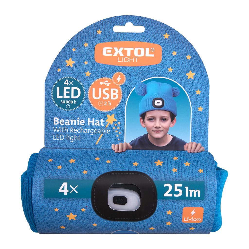 Domov » Náradie » Aku náradie » Svietidlá » Čiapky » Extol Light 43459 – Čiapka modrá detská s čelovým svetlom, LED 4x25lm, 250mAh Li-ion, nabíjanie cez USB