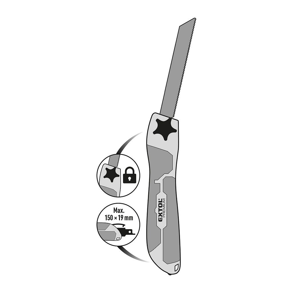 Domov » Náradie » Ručné náradie » Pilníky a rašple » Pilníky » Extol Premium 8806990 – Rukoväť na pílové plátky, so zásobníkom na 3 plátky