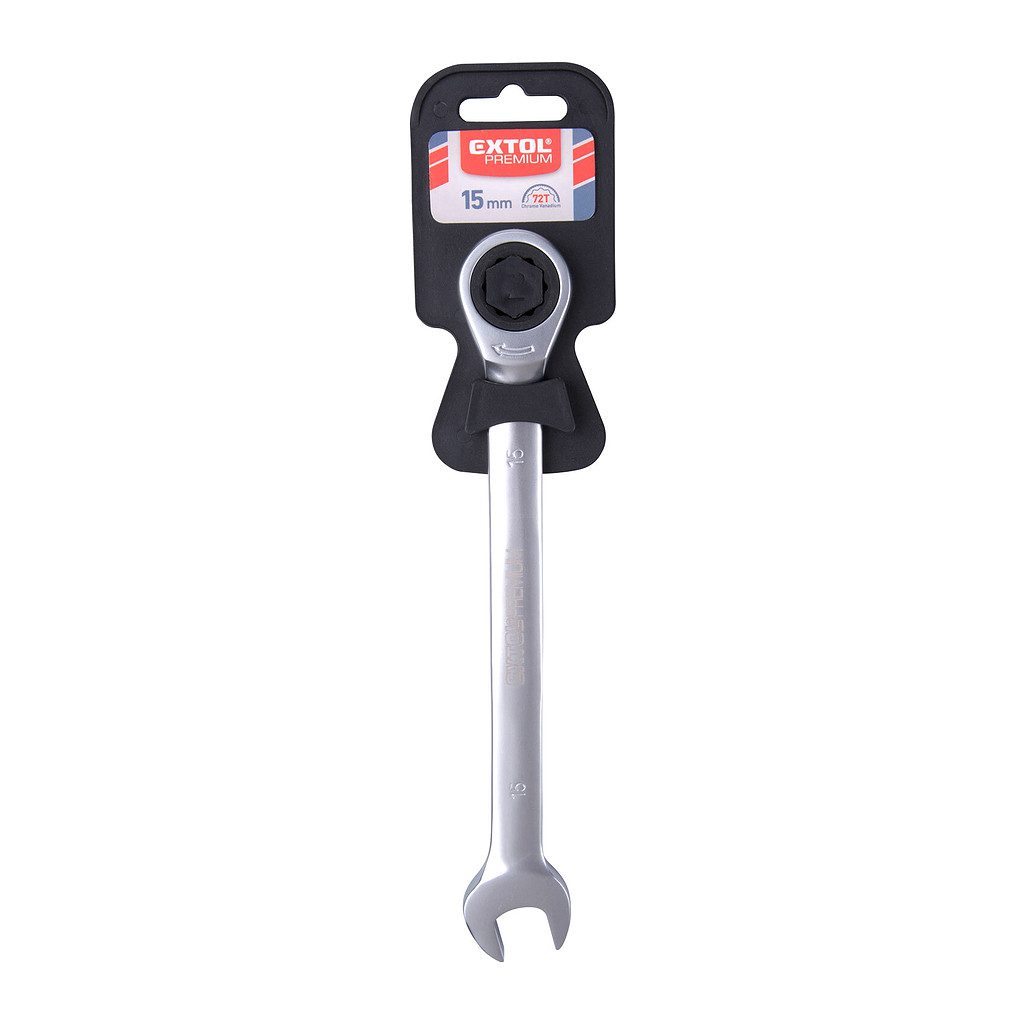 Domov » Náradie » Ručné náradie » Račne, hlavice a kľúče » Očkoploché račňové kľúče » Jednokusové balenia » Extol Premium 8816115 – Kľúč očko-vidlicový, račňový, 72 zubov, 15mm
