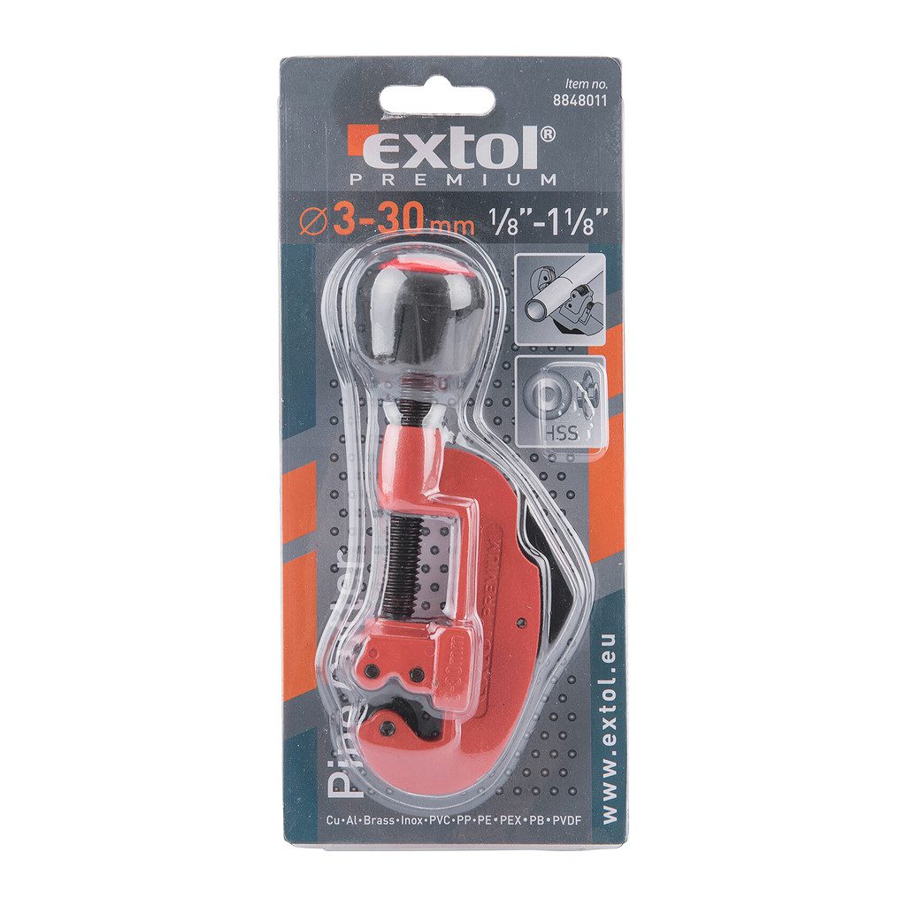 Domov » Náradie » Ručné náradie » Vodovodné náradie » Rezáky na rúrky » Extol Premium 8848011 – Rezač rúrok 3-30mm s odhrotovačom