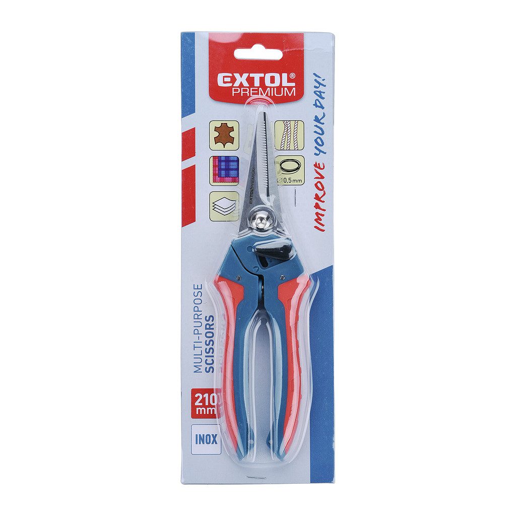 Domov » Náradie » Ručné náradie » Nože a nožnice » Nožnice » Extol Premium 8855202 – Nožnice viacúčelové rovné, 200mm, antikorová oceľ, s pružinou