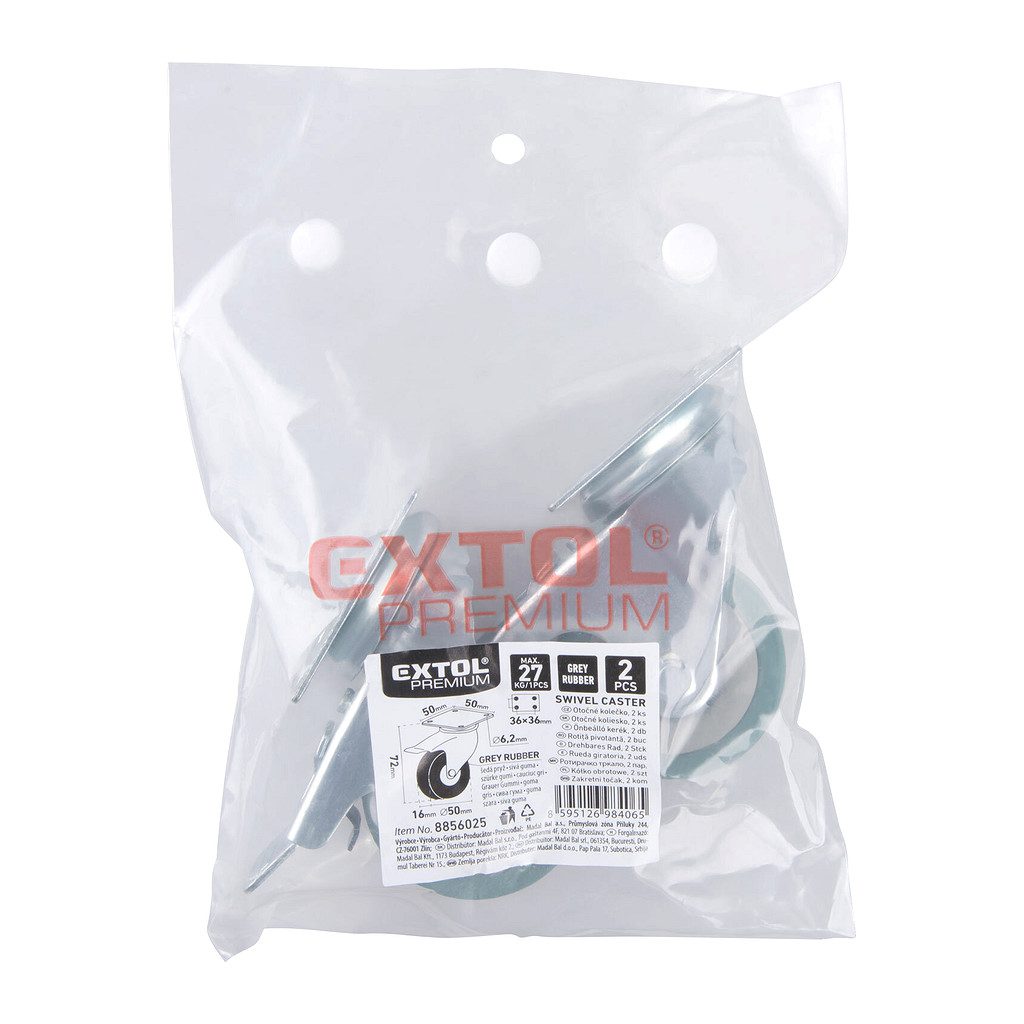 Domov » Náradie » Úložné systémy » Kolieska » Extol Premium 8856025 – Kolieska otočné s brzdou 2ks, Ø50mm, max. 27kg/1ks