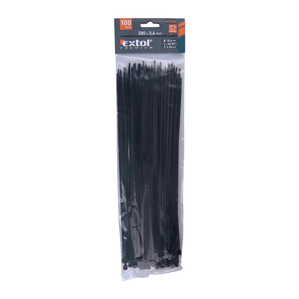 Domov » Náradie » Ručné náradie » Sťahovacie pásky » Čierne » Extol Premium 8856158 – Pásky sťahovacie čierne, 3,6x280mm, 100ks, Ø70mm, 18kg