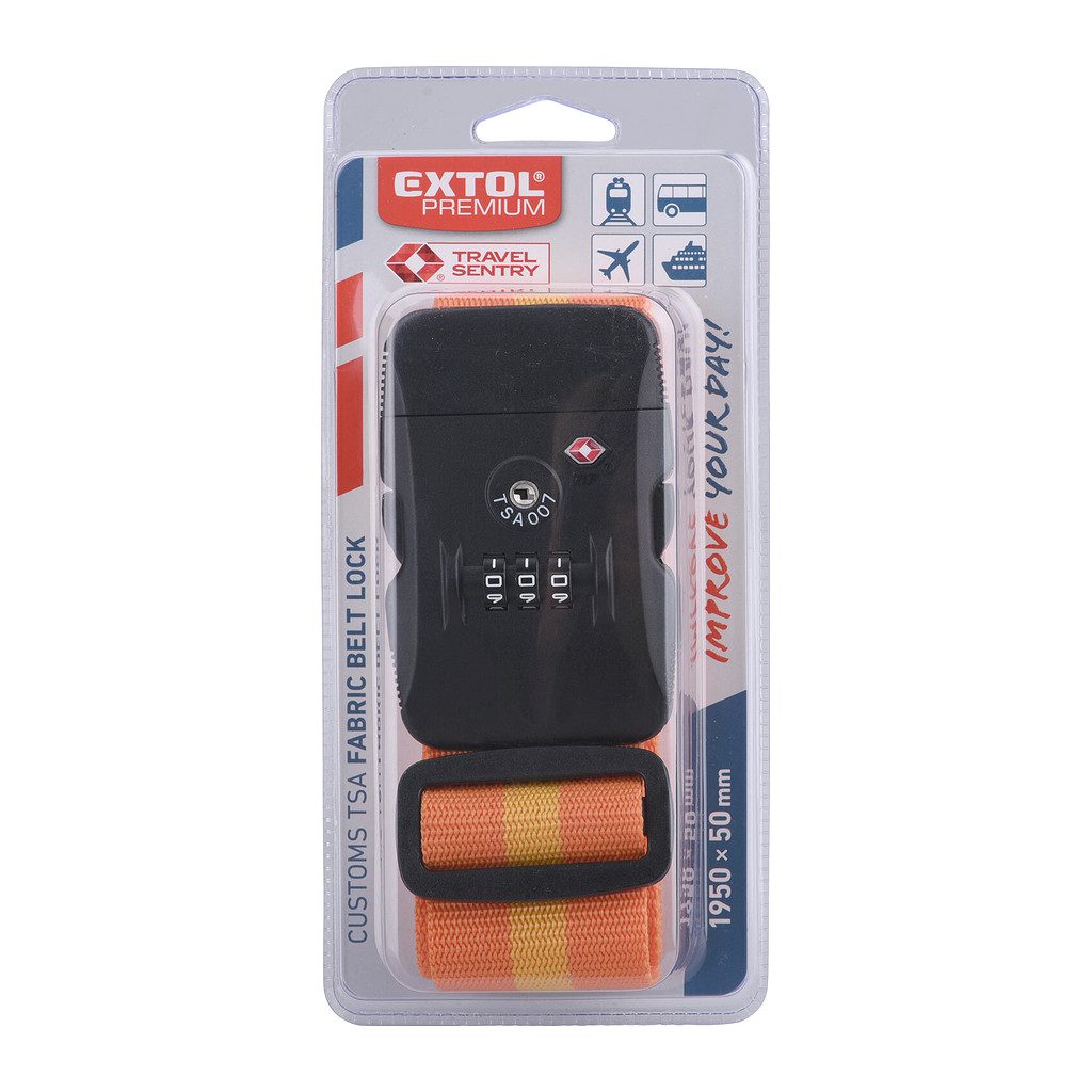 Domov » Náradie » Doplnky » Zámky » Visacie zámky » Extol Premium 8857312 – Popruh na batožinu s plastovou prackou a TSA zámkom, 195x5cm