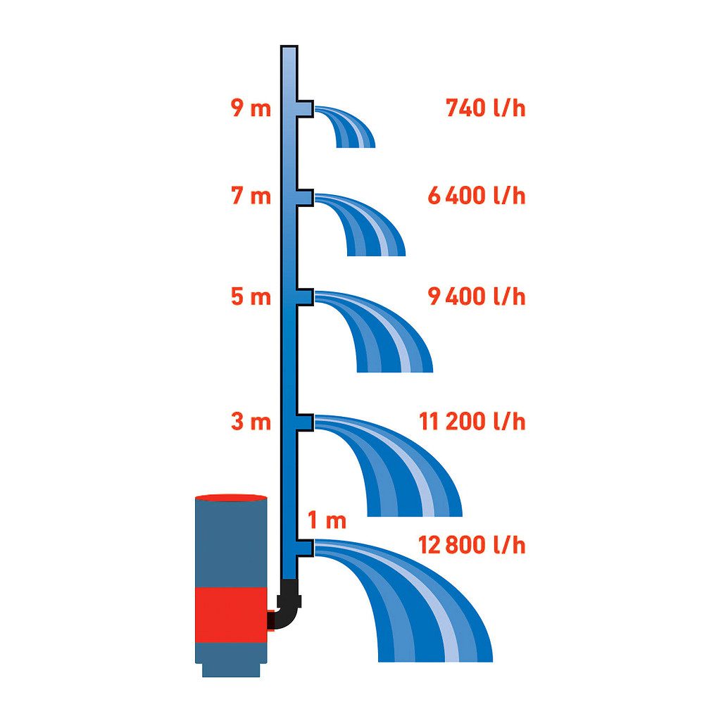 • nastavenie základne v troch úrovniach umožňuje odčerpávanie zvyšnej vody so zníženým prietokom a priepustnosťou častíc