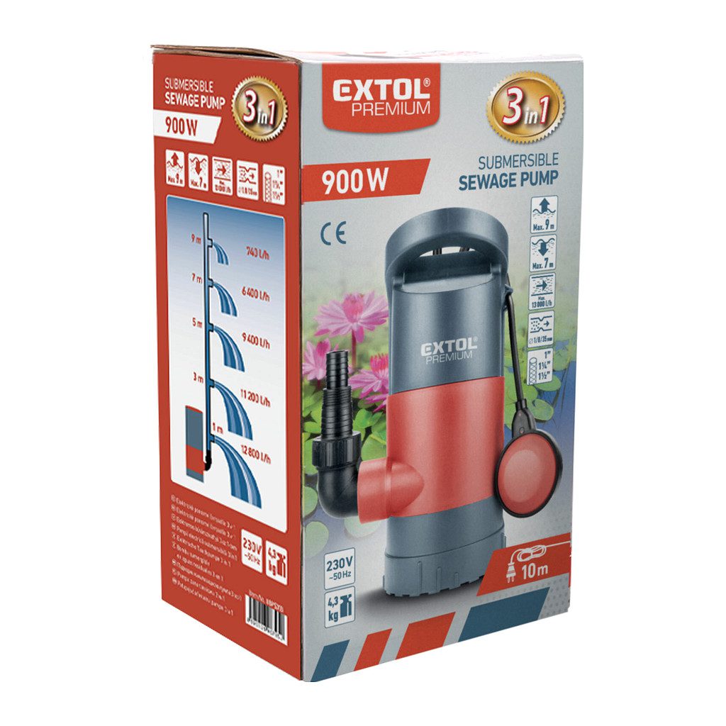 Domov » Náradie » Elektrické náradie » Čerpadlá » Ponorné kalové čerpadlá » Extol Premium 8895013 – Čerpadlo kalové, 3v1, príkon 900W, 13000 l/h