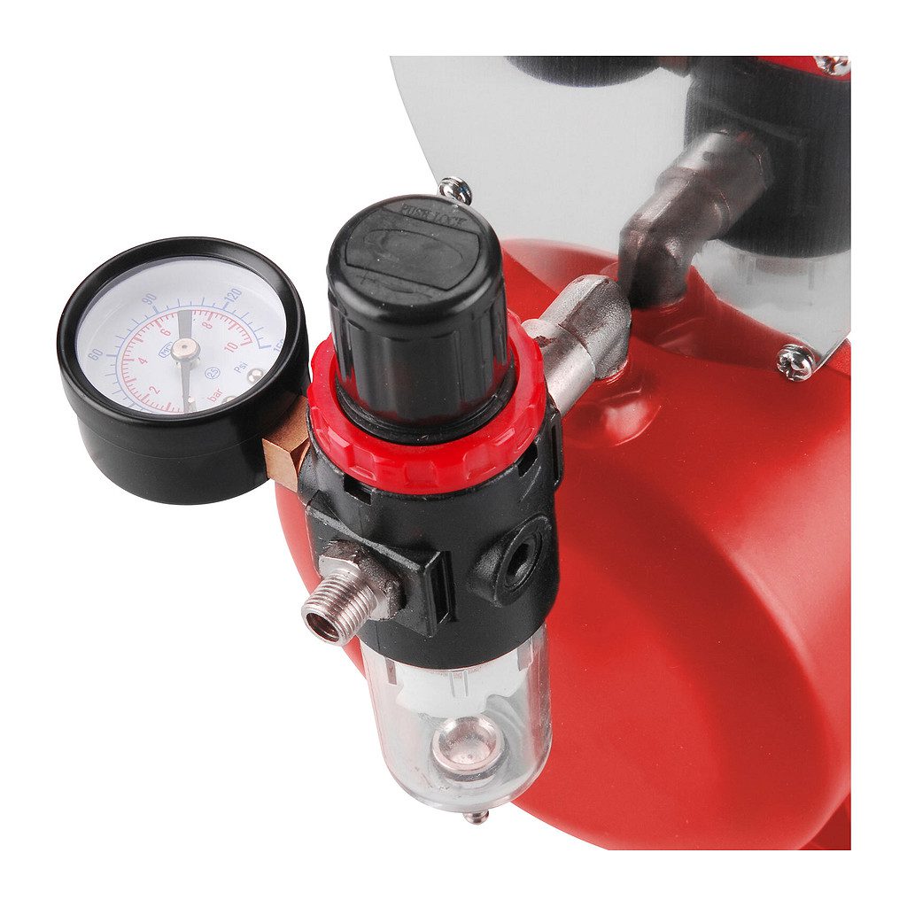 tichý kompresor určený predovšetkým pre striekacie pištole (airbrush) a daľšie vzduchové náradie ako sponkovačky, ofukovačky atď., je tiež vhodný pre hustenie pneumatík bicyklov i automobilov.