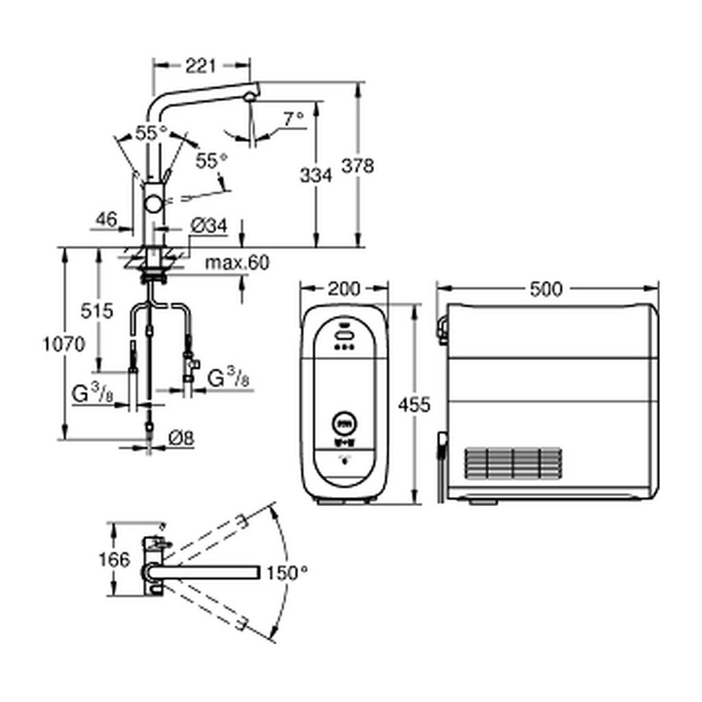 • Nastaviteľný pre GROHE Blue filter velkosť S, GROHE Blue