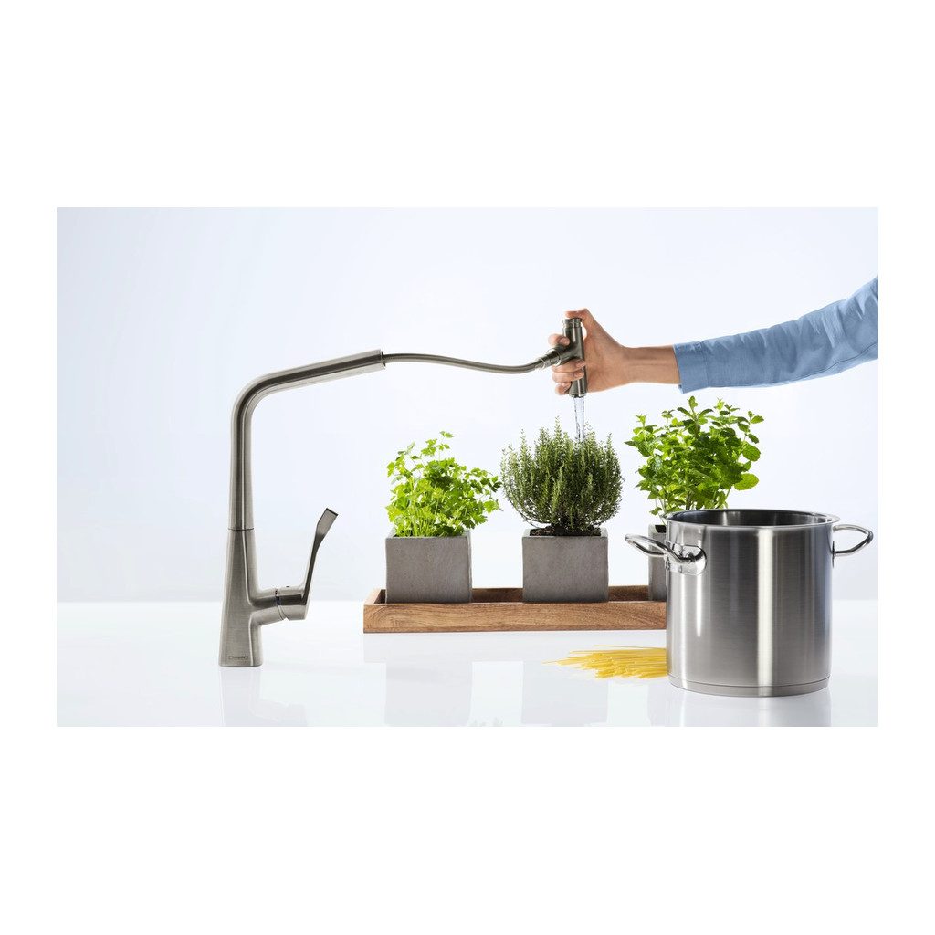Domov » Sanita » Kuchyne » Drezové batérie » Drezové batérie s výsuvnou sprchou » Hansgrohe Metris Select M71 – Kuchynská páková batéria 320 s vyťahovacím výtokom, 1jet, vzhľad nerezu 14884800