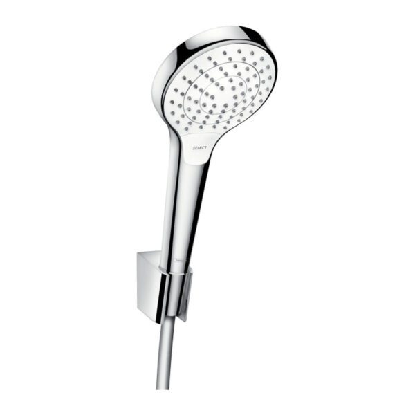 Domov » Sanita » Kúpeľne » Sprchy » Sprchové sety » Hansgrohe Crometta – Sada so sprchovacím držiakom Vario so sprchovou hadicou 160 cm, biela-chróm 26692400