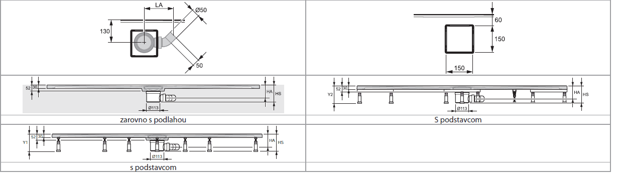 • Pre montáž s podstavcom, nožičkami, polystyrénovým nosičom, alebo priamo na podlahu