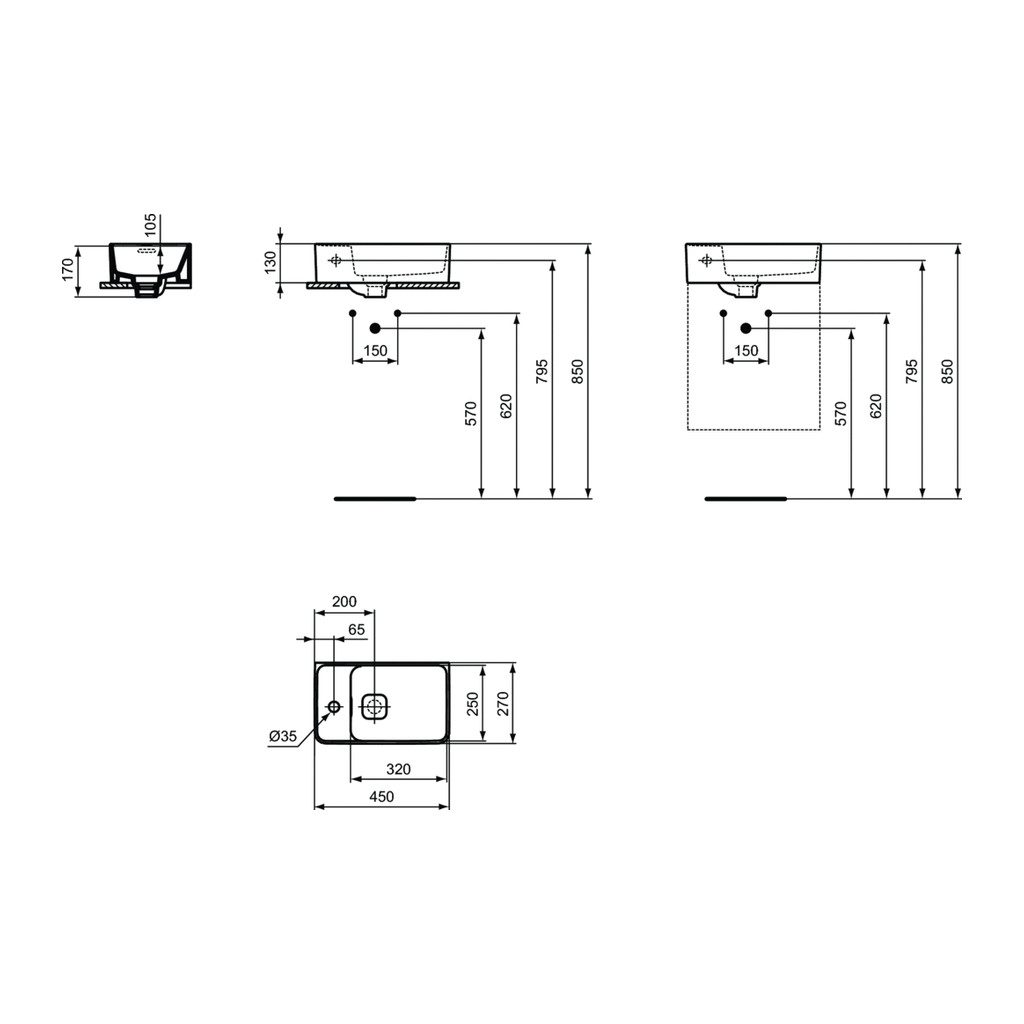 Domov » Sanita » Kúpeľne » Umývadlá » Umývadielka » Ideal Standard Strada II – Umývadielko 450×270 mm, s otvorom naľavo, biela T299501