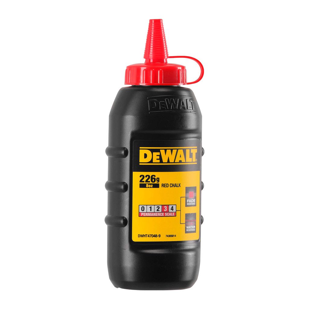 Domov » Náradie » Ručné náradie » Meradlá » Linkovacie šnúry » Kriedy » DeWALT DWHT47048-9 – Prášková krieda červená 225g
