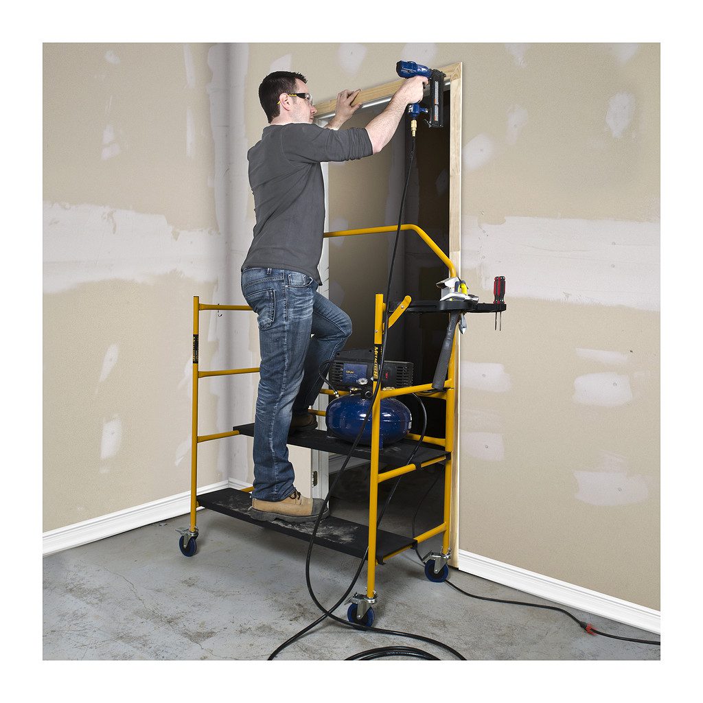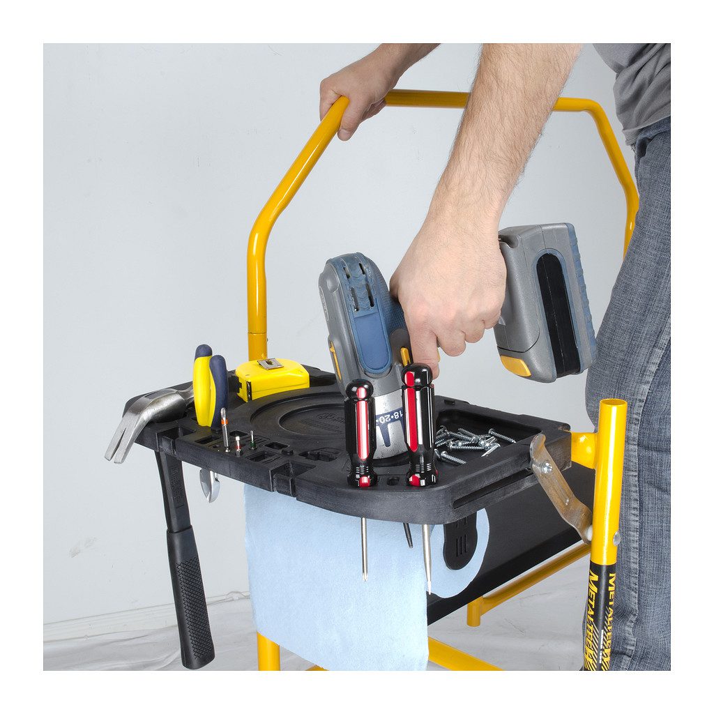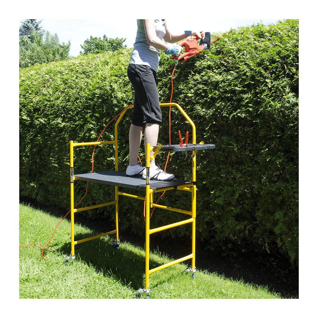 Lešenie Jobsite 4´ s dosahom 2,7 metra a hĺbkou len 57,2 centimetra je šikovným pomocníkom nie len pre profesionálov ale aj domácich kutilov. Je ľahké a skladné. Použiť sa dá aj ako vozík pre náradie. Belenie obsahuje policu na náradie a zábradlie.