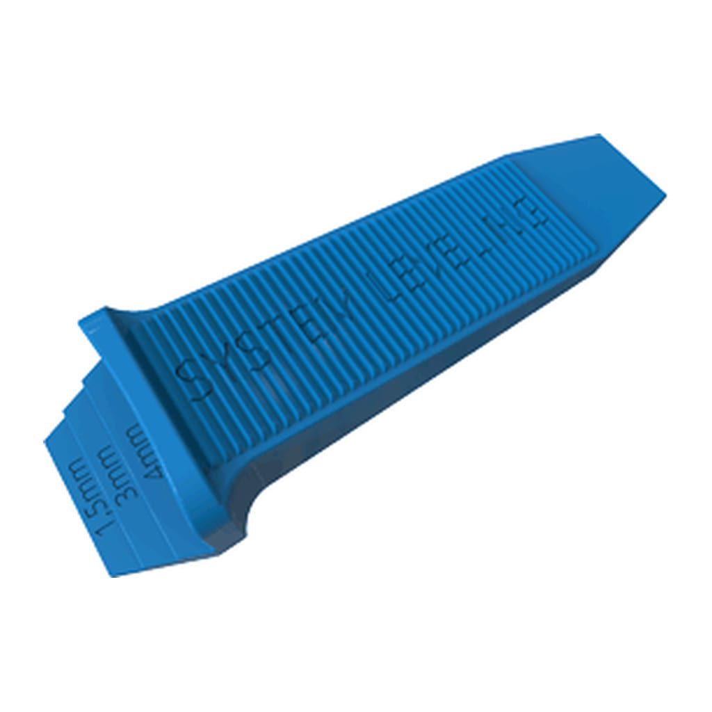 Kompletná nivelačná sada obsahuje 100 kusov spôn, 100 kusov klinov, 1 nivelačné kliešte. Spony majú hrúbku 1 mm. Sada je vhodná pre hrúbku dlaždíc 3-12 mm, kompatibilná s akýmkoľvek materiálom. Súčasti sú 100 % symetrické a zaručujú podlahu bez nerovností. Balené v praktickom plastovom vedre.