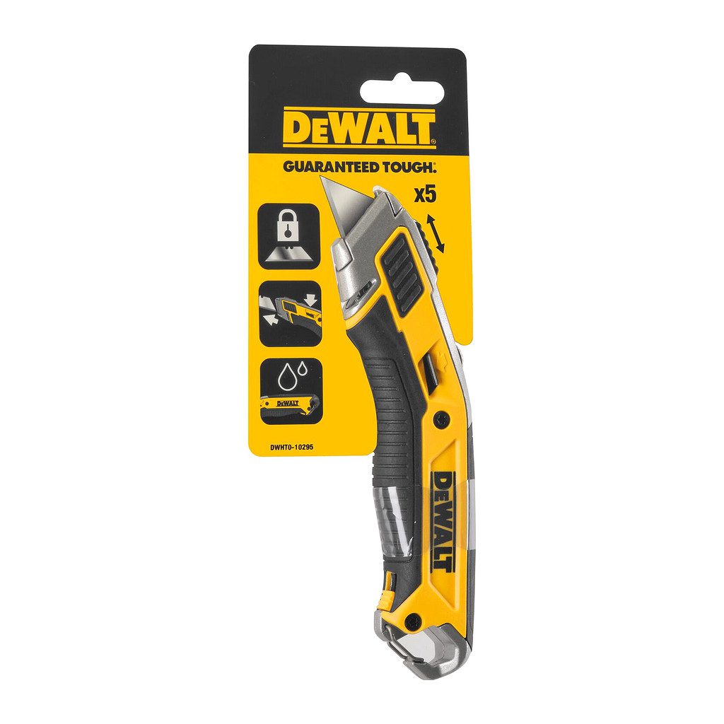 Domov » Náradie » Ručné náradie » Nože a nožnice » Nože so zasúvacou čepeľou » DeWALT DWHT0-10295 – Nôž so zasúvaciou čepeľou + čepel 5ks