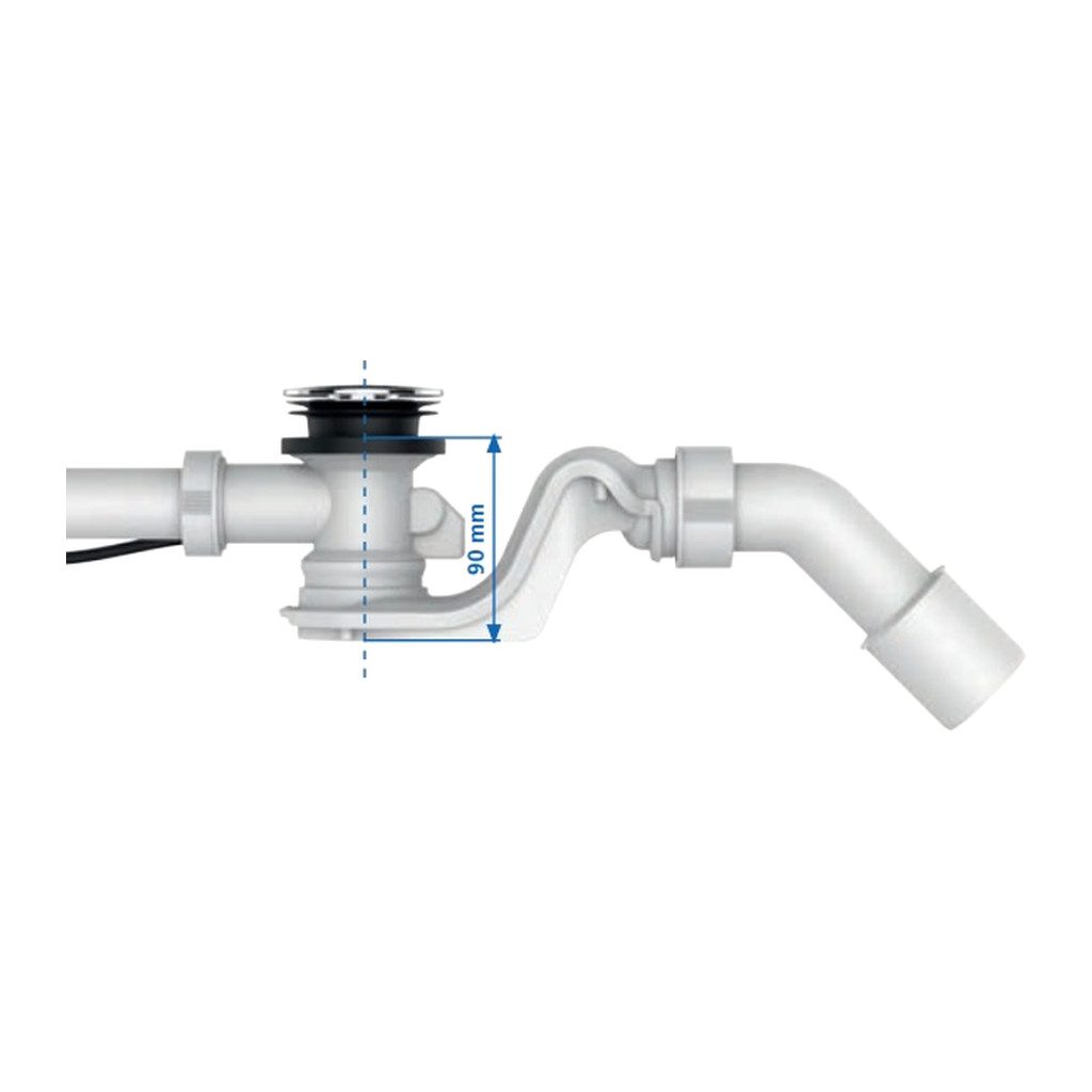 • s kompaktnou inštalačnou výškou (90 mm) a priemerom odpadového ohybu 40/50 mm