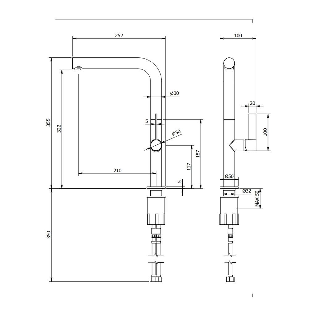 • Výtokové rameno v tvare „L“