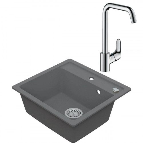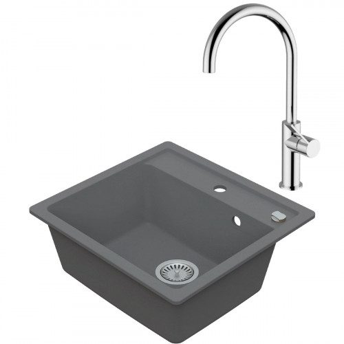 Domov » Sanita » Kuchyne » Drezy » Drezové sety » Drezový set Teorema 1/C – Granitový drez, 53x50cm, Sivá + Drezová batéria Teorema