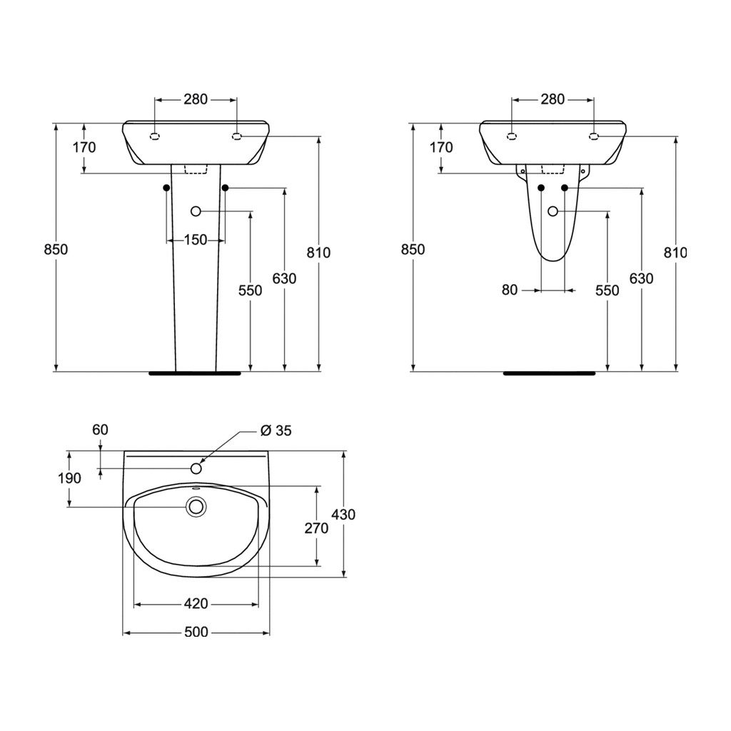Vzdialenosť odtoku od steny umývadla (mm): 190